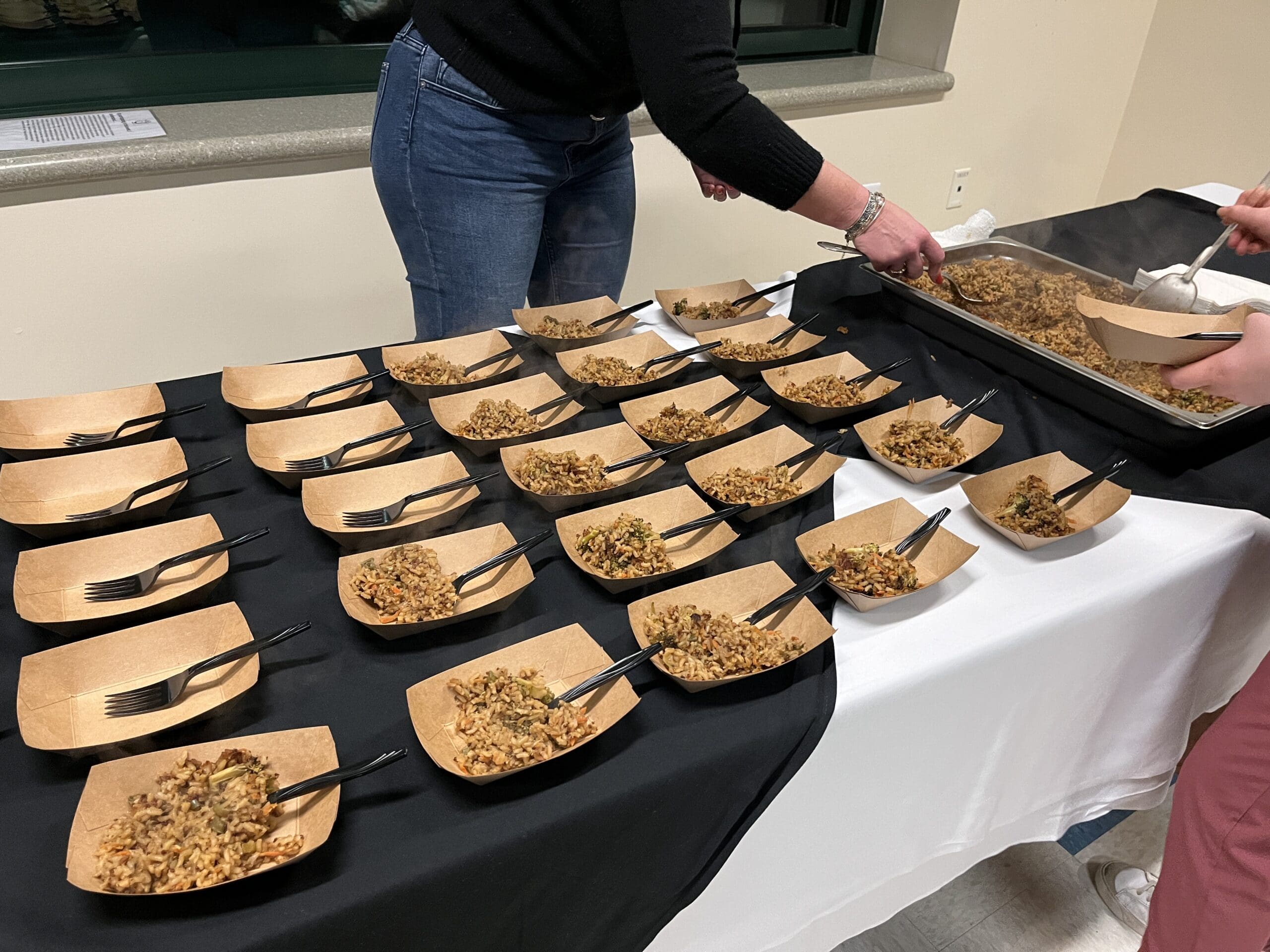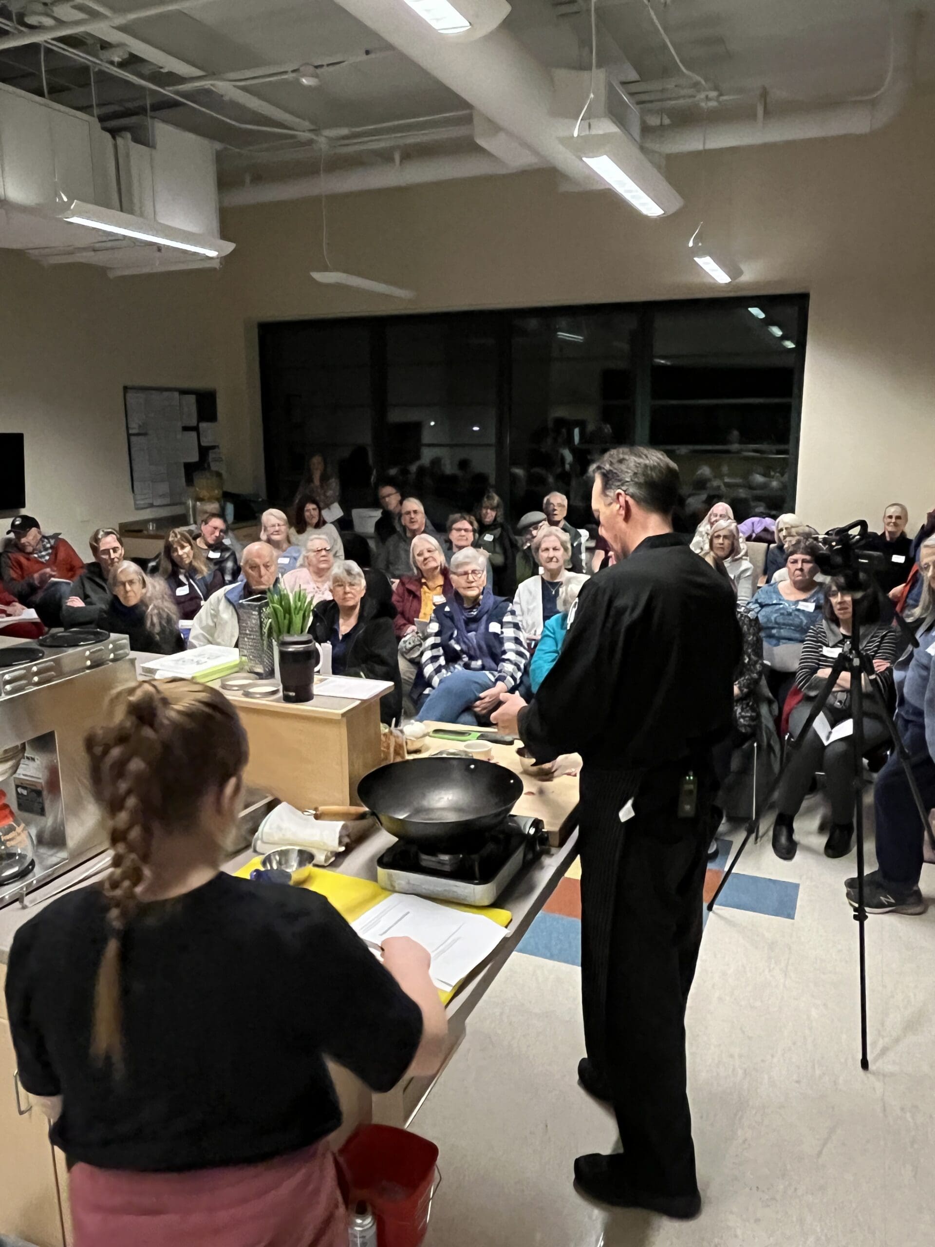 At least 50 people joined us for our Food as Medicine Cooking Demonstration to kick off National Nutrition Month. The night was a delightful blend of culinary inspiration, heartfelt storytelling, and community engagement. Chef Jason Tostrup, accompanied by his twelve-year-old Sous Chef and daughter Olivia whipped up the delicious Vegetable Unfried Rice from the How Not to Die cookbook by Michael Greger. Read more below the photos.